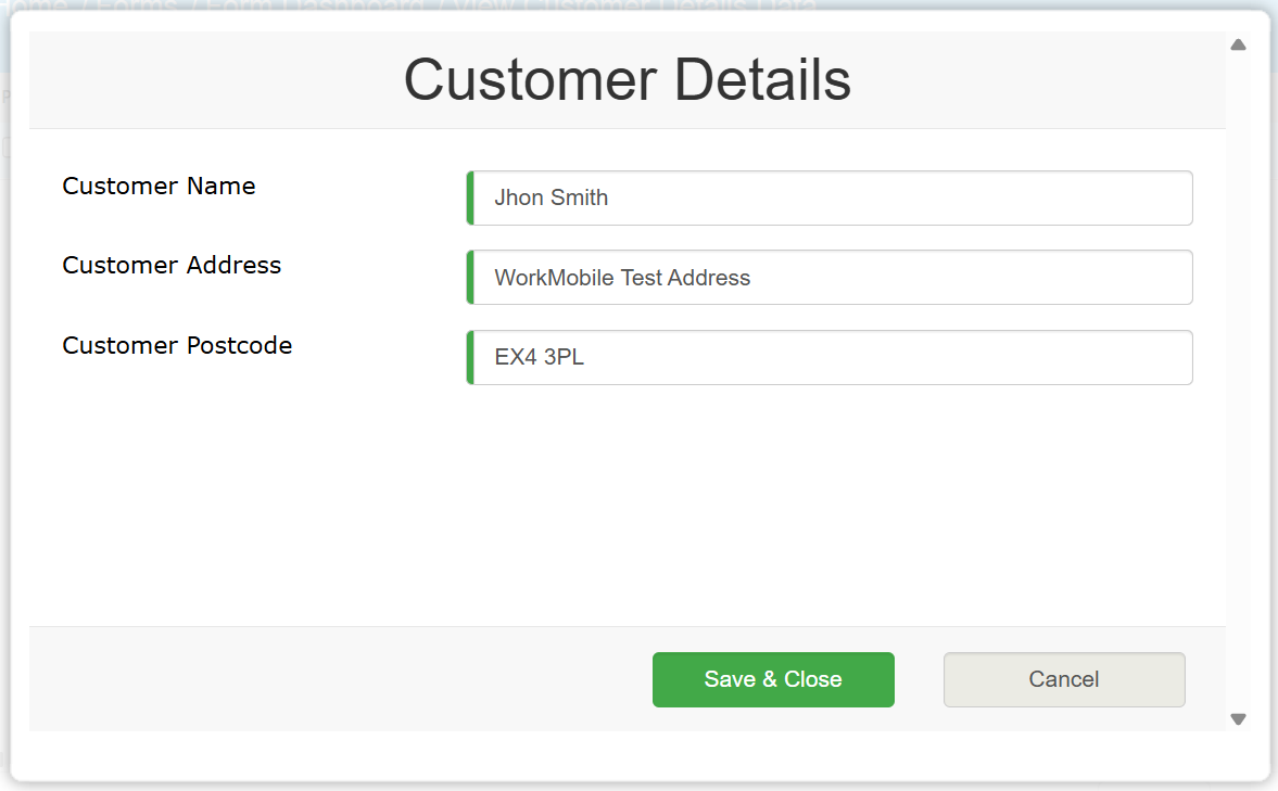 In this example, we will be using the Data Editor to correct a misspelled Customer Name on a completed record. For this we will build a Customer Details form, submit a record and upload. In this scenario, the customer has called to inform you that their name is misspelled on a report they received from the company.