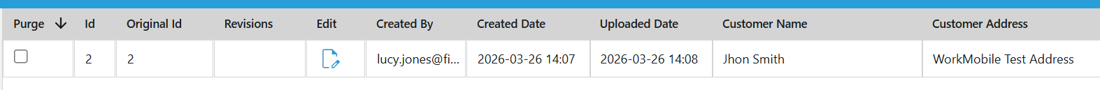 | Customer Address | WorkMobile Test Address |