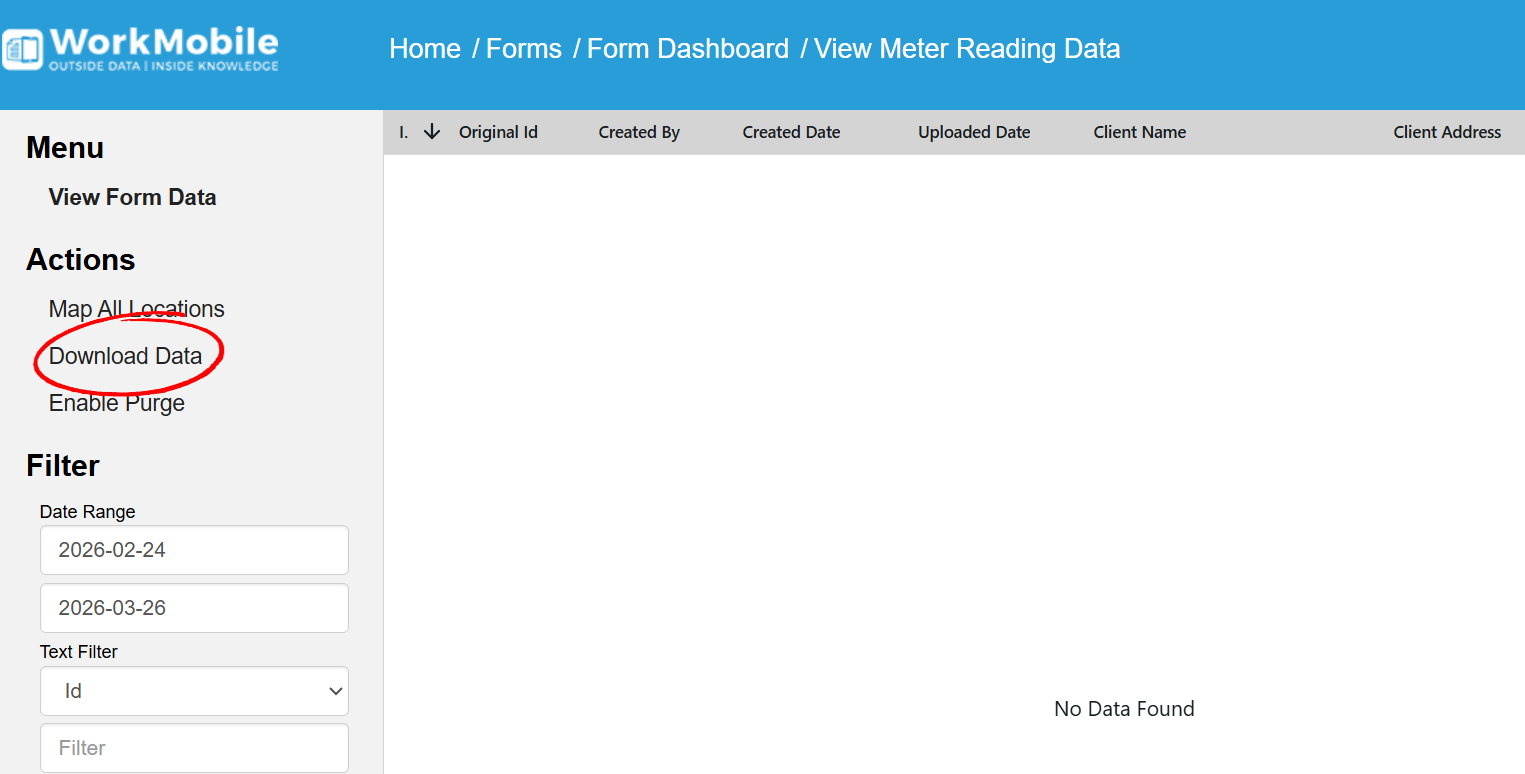 | Date Range | You can enter a date range and only data that was uploaded within that time frame will be downloaded. This validates on the Created Date column. |