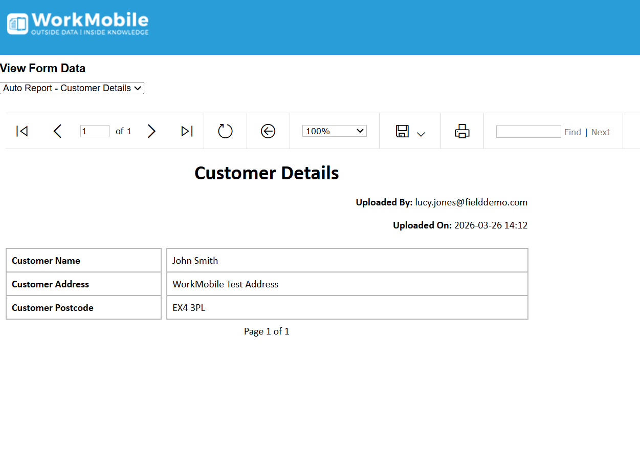 After logging in, users will be able to view the shared record using either the Auto Report which is generated for all forms when enabling Share Form Data, or through a bespoke report made through Report Builder. Reports can be exported and printed from this view as well.