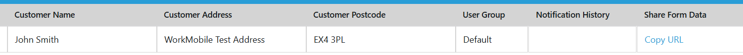 Once enabled, users will be able to see a new column for Share Form Data within the Completed Records table. To generate a shareable link, simply click the Copy URL button for the uploaded record(s) you would like to share. This will then automatically copy the URL to your clipboard so it can be pasted into your correspondence.