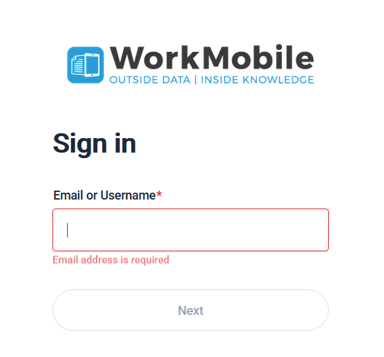 Once the URL has been shared, users opening it will be required to login to the WorkMobile website using either a portal or mobile user login. This can be done when visiting the website through either a laptop or mobile device. Users will only be able to view the form data if they access to both the account and the user group that the Form belongs to.
